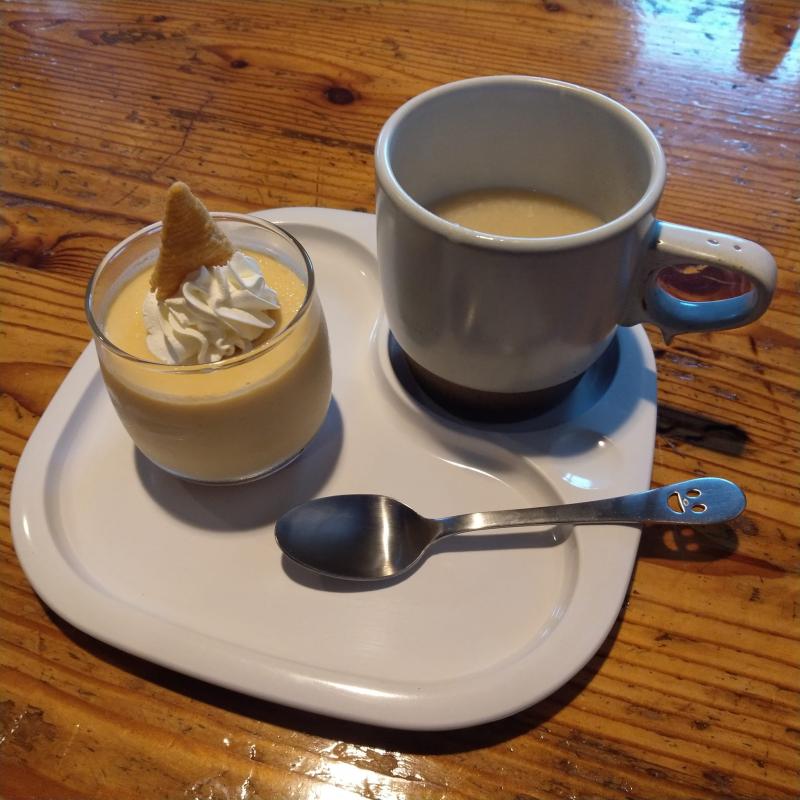 小屋にて昼食を頂き、シェフの気まぐれプリンと甘酒で