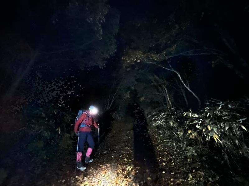 朝4時半に集合し、真っ暗な中ハイキングをスタート!