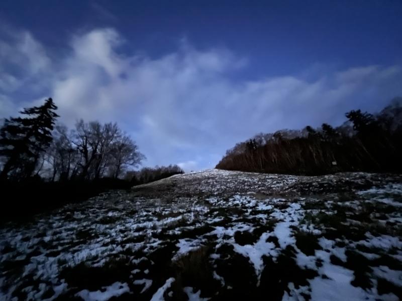 「手稲山」には、いくつか登山コースがありますが、今回は日の出前の暗い時間帯から登り始めるので、一番短くて、見通しの良い「スキー場ゲレンデコース」を選びました。