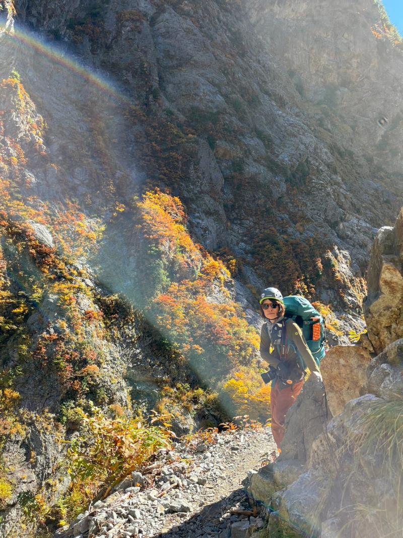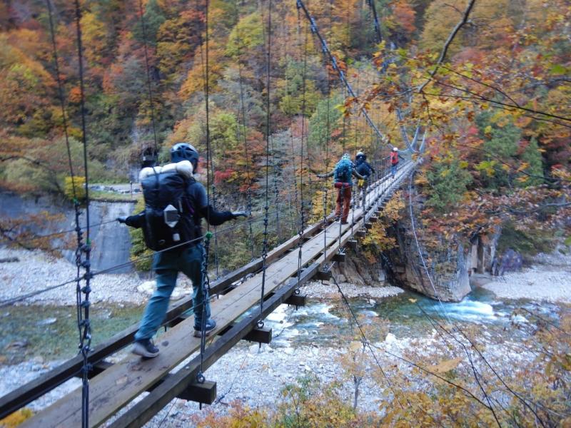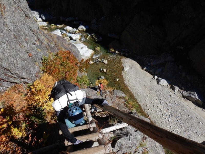 十字峽にて一旦川に下ります。朝扇沢でお会いした山岳ガイドさんのチームとほぼ同じペース、下るルートを教えて頂きました。ありがとうございます。
