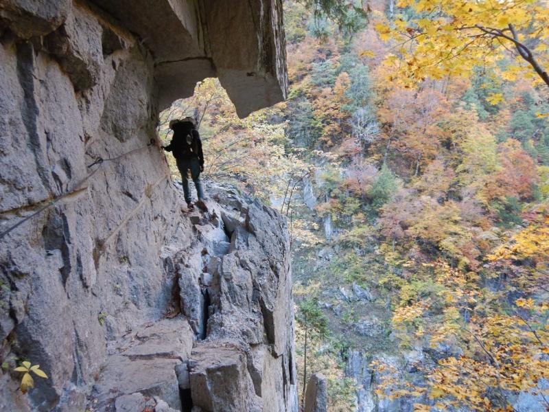 仙人ダムから先は欅平までが同じく黒部川沿いに沿って「水平道」として約13kmの水平道が続きます。水平歩道ですが、崖っぷちを歩くので