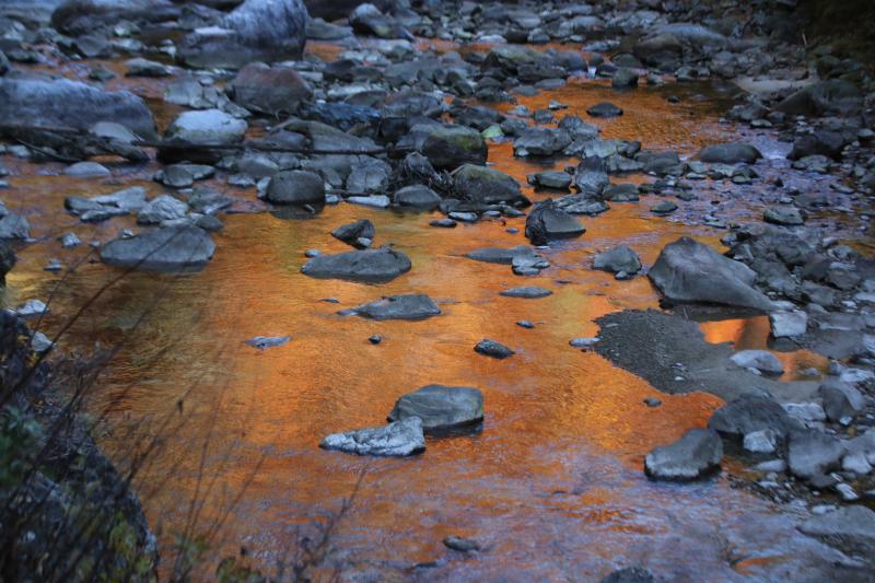 川面がオレンジに輝き、輝く紅葉に皆感動で一杯になります。今回は写真女子軍団でもあり、写真ポイントでは写真を撮りながら進みます。「なんだこりゃ」の連続の素晴らしい景色に圧巻です。今年は紅葉が遅く、予定の17日でなく月末でよかったなと思います。