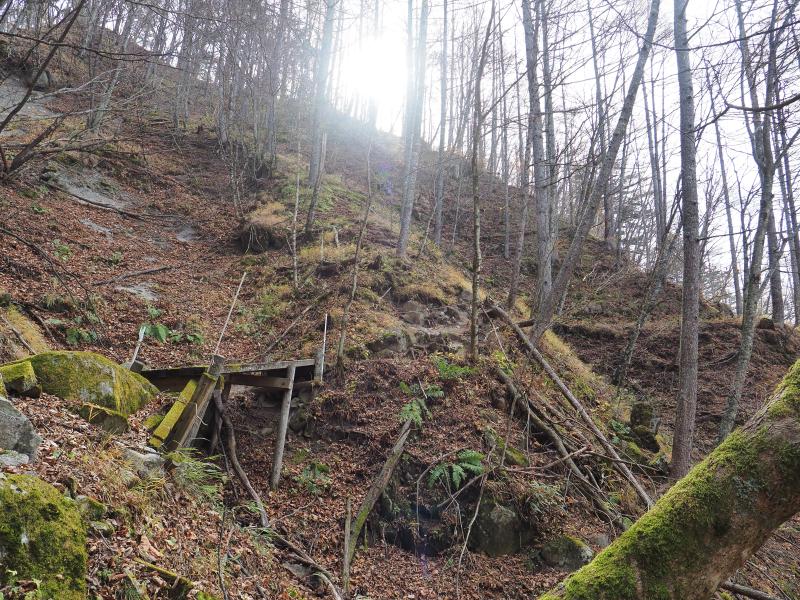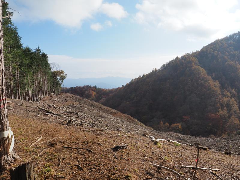 ・雁ヶ腹摺山取り付き点手前の開けた場所が土砂崩れなのか道が分かりづらいが踏み跡あり。下の方は崩れやすいので要注意。