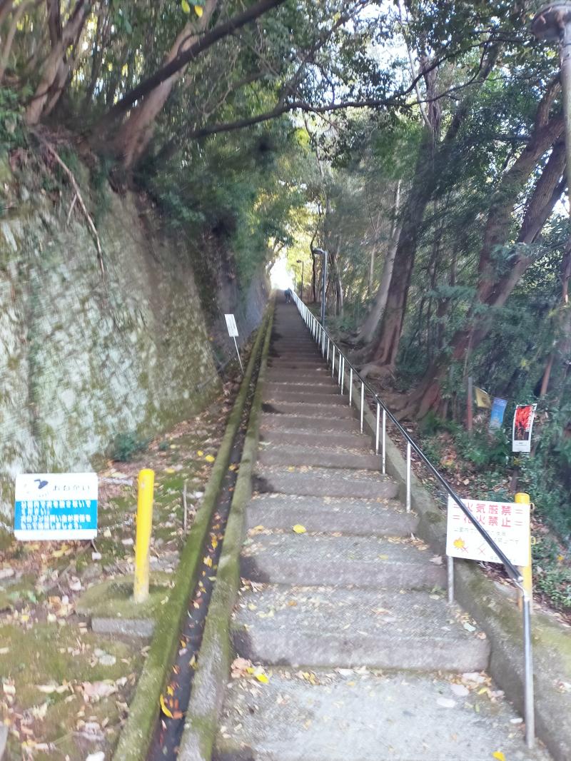 傾斜のついた階段なので子供の手はしっかりにぎって登りました。