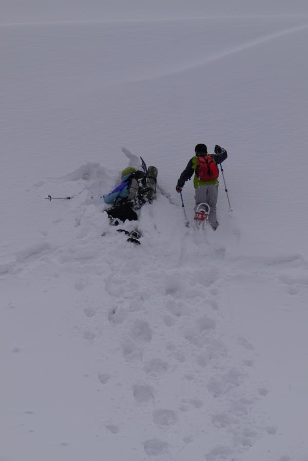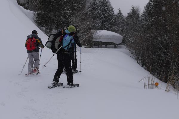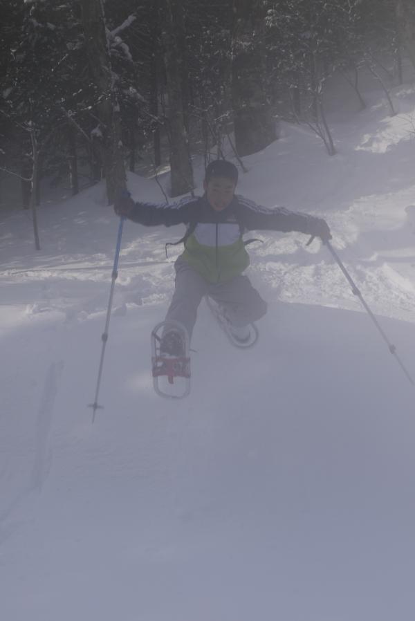 - 当日は積雪量も多く雪質も良好、お天気を除いてスノーシューに最高のコンディションでした。