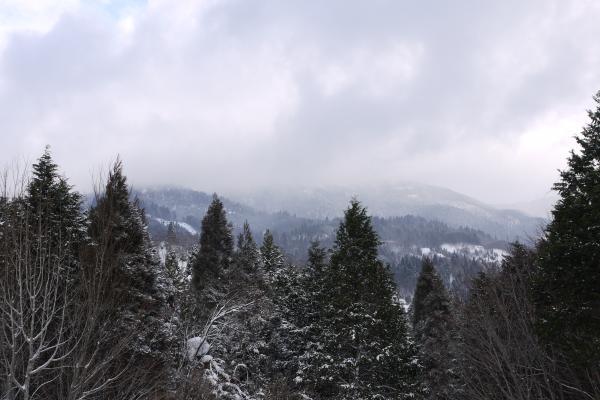 今回、雪模様の曇り空のため展望は今一つでしたが、小なアップダウンを繰り返す県境尾根を