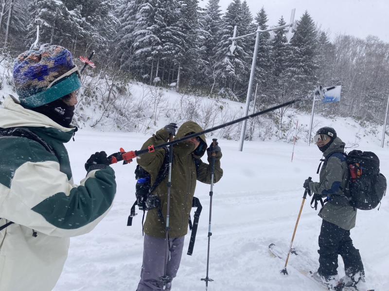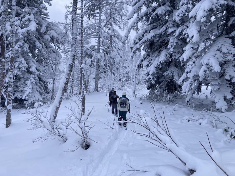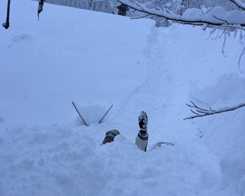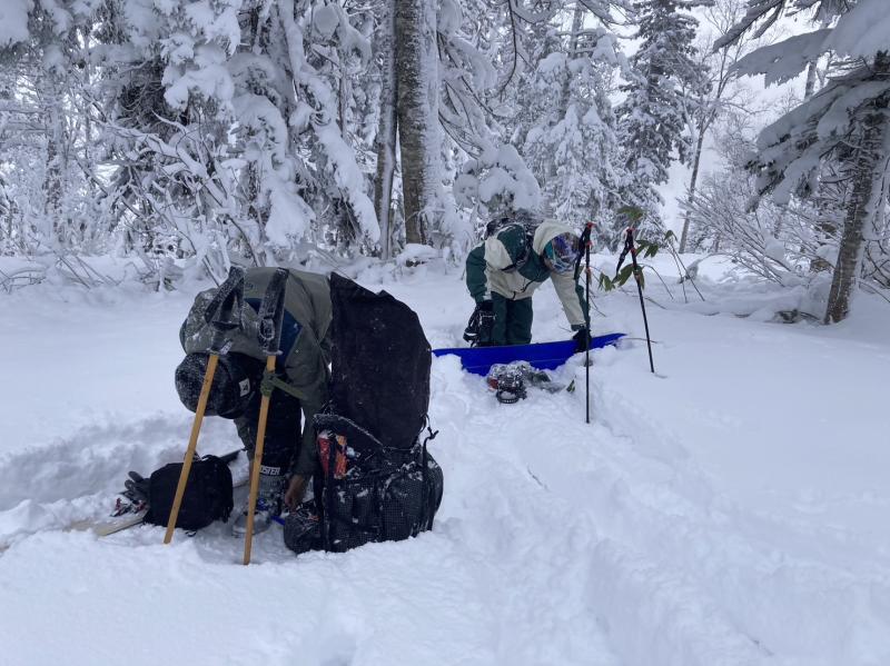膝くらいまで沈んでしまう積雪量のラッセルで、