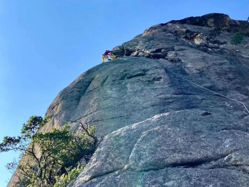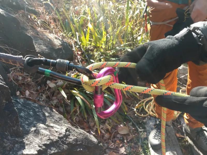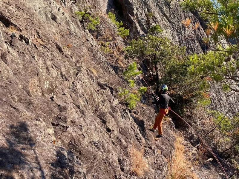 午後は百丈のいつも懸垂下降の練習をする簡単な岩場をクライミング、岩のトップからの懸垂下降のトレーニングを実施しました。