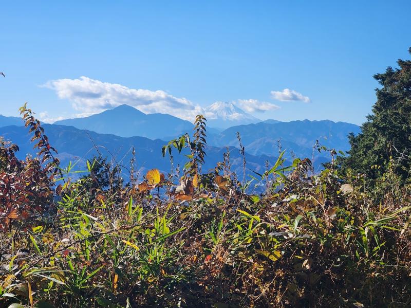 展望台では白くなった富士山がお出迎え。ここで残りのおにぎりとパンでお昼休憩にしました。茶屋のきのこ汁があれば最高でしたがこの日は残念ながら開いておらず。ご飯の後は分岐を通って4号路まで。山頂には行きませんでしたが、紅葉と通ったことのない道をたどって歩き応え十分でした。高尾山は何度行っても違う楽しみ方が出来るので人気の理由がわかります。