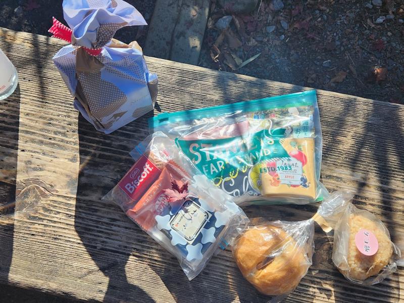 今回は高尾山口で降りる前に手前の高尾駅で下車。ホームで一言堂さんの美味しそうなパンやおにぎりが買えるので、山のお供に買い込みました。私は一番人気のきなこクリームパンや黒糖りんごパン、タコ飯おにぎりを買いましたが、パニーニやプレッツェルなど、皆負けずに美味しそうなものをチョイスしてました。こちらのお店は改札を出れば広い店内でお茶も出来るので、登る前や下山後に高尾駅に寄るのも良いかもしれません。