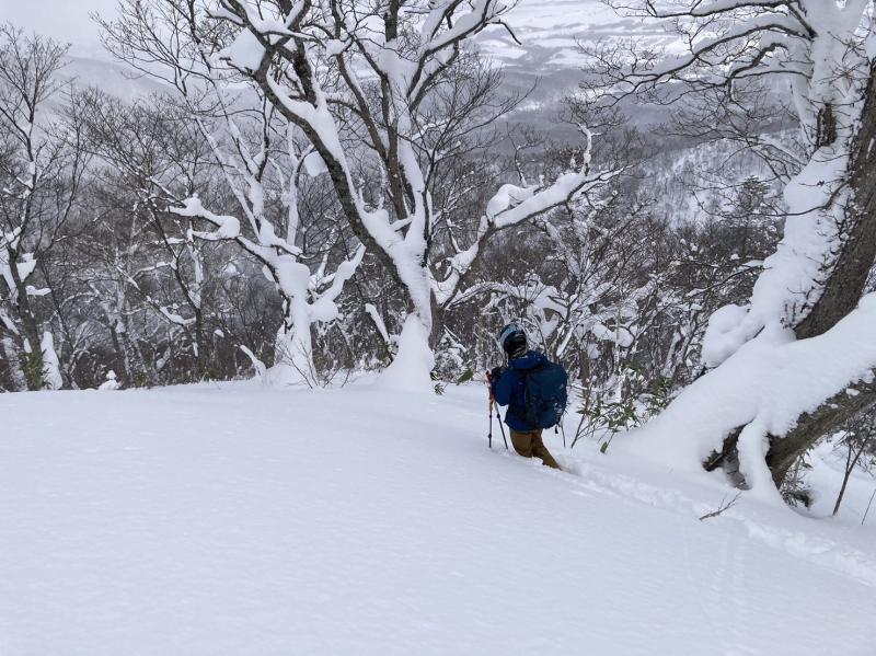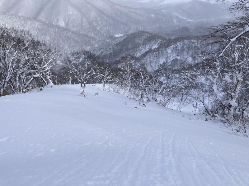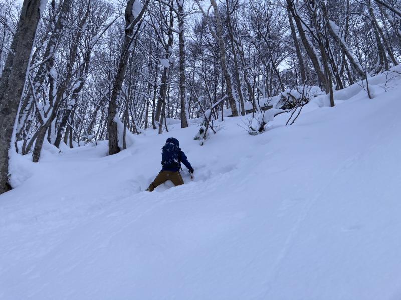 500m付近から手頃な斜面へ、一本ドロップ。