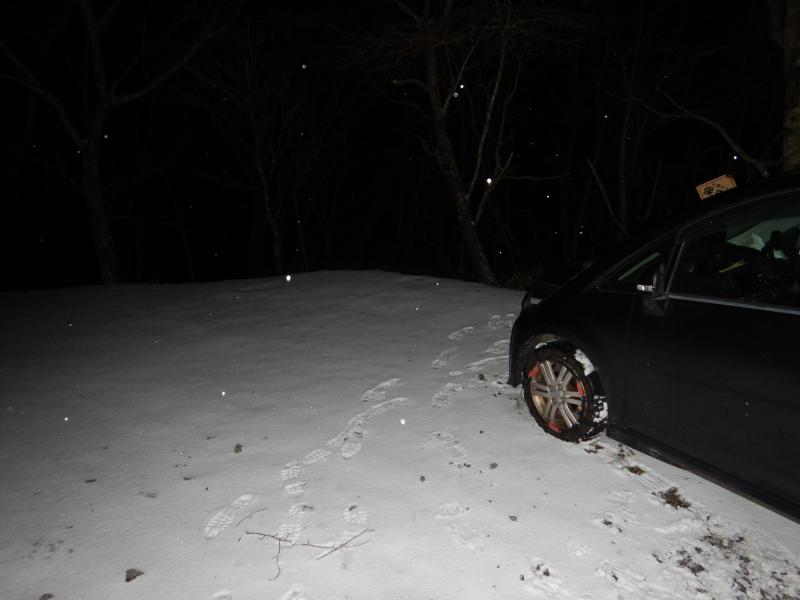 あと少しで登山口までなのはわかっていたのに、仕方なくチェーンを着けます。