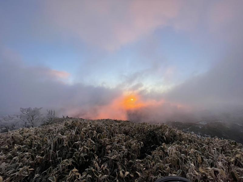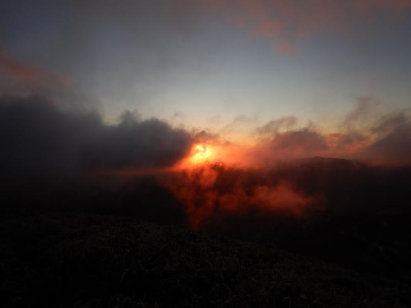 ついには日が昇り始め、雲に隠されてぼんやり赤みがかる程度のご来光。