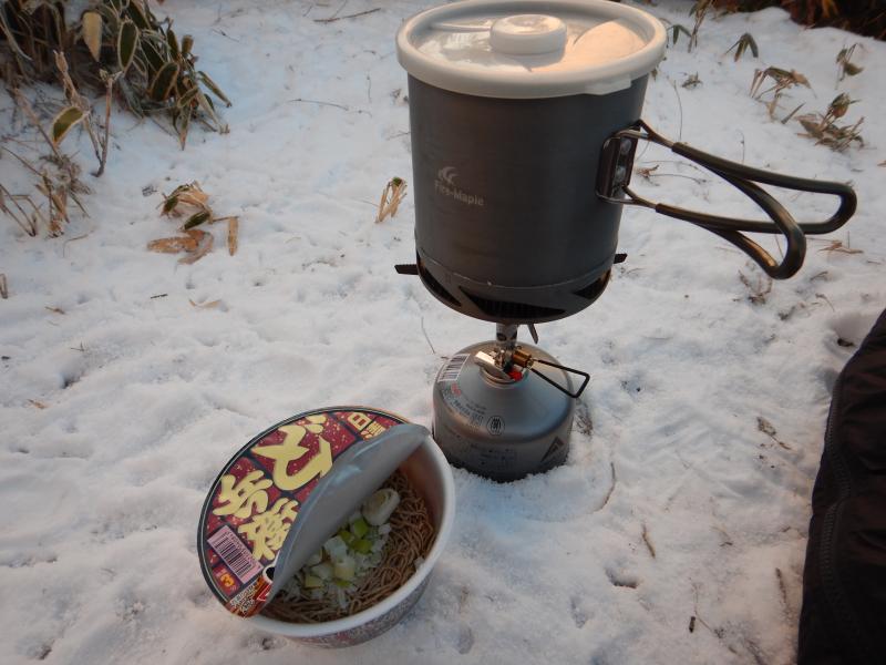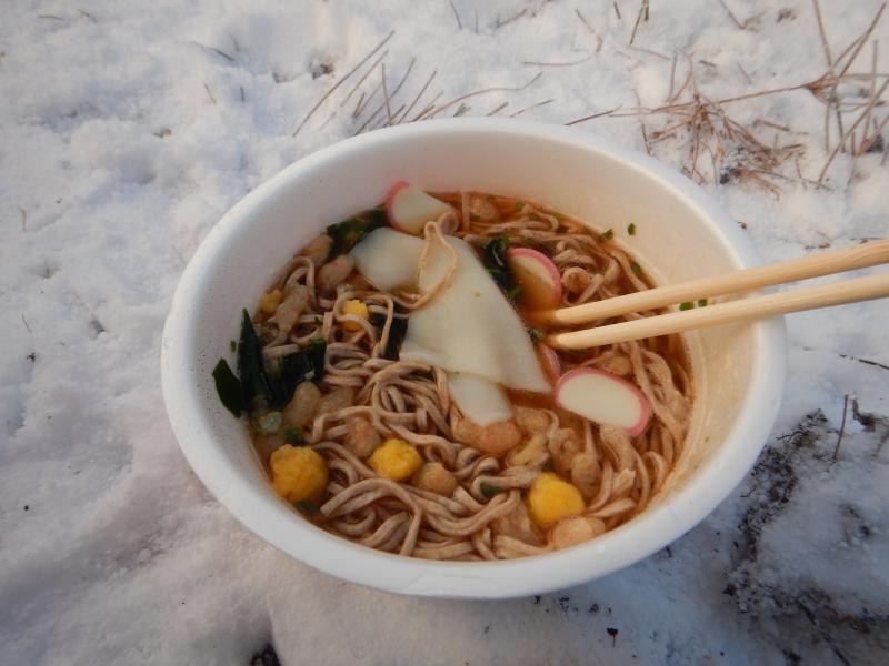 ひとしきり写真を撮り、恒例のカップ蕎麦を食べました。
