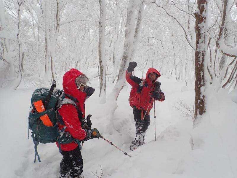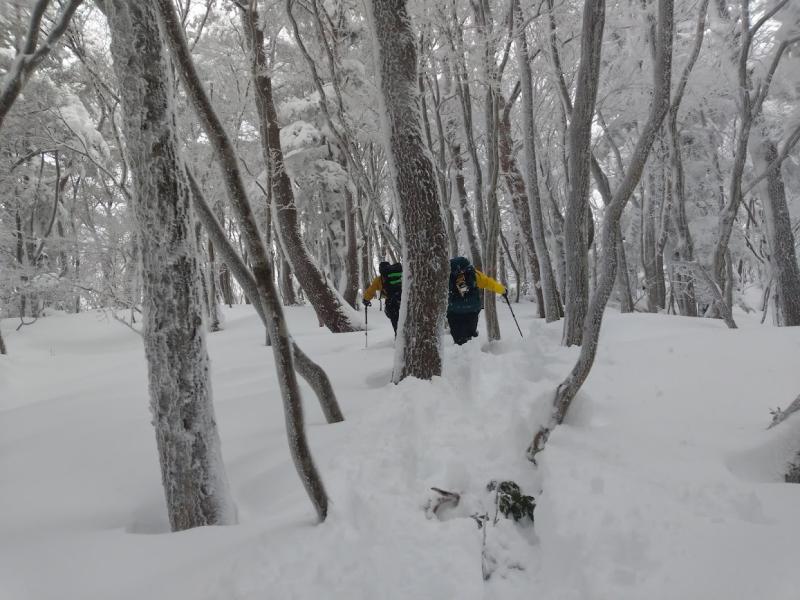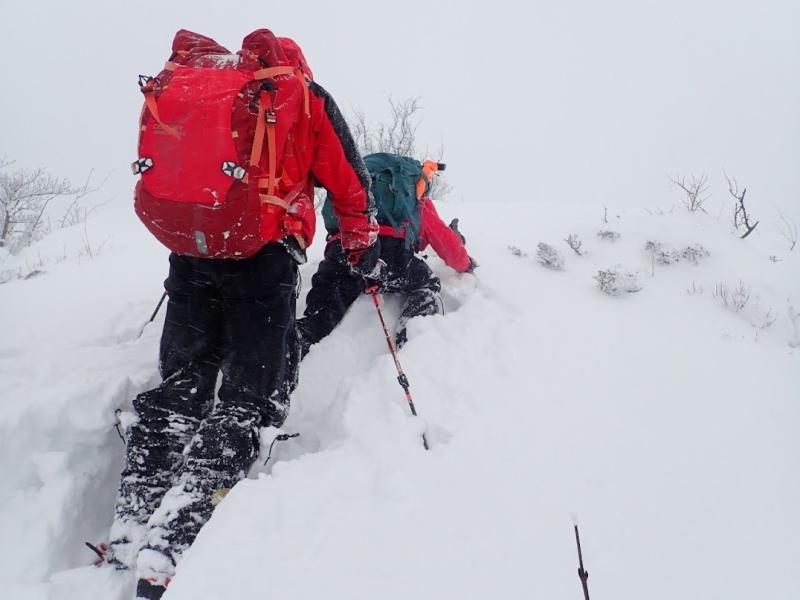 わさび峠からのラッセル一部自分、稜線まで 師匠、 稜線はライトニングアッセントの自分山頂手前での交代でした。