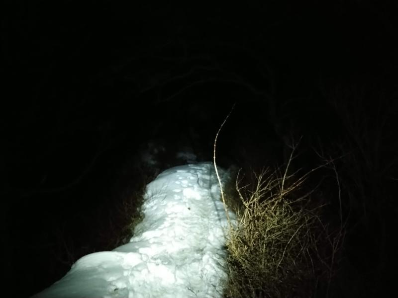 ※ナイトハイクは様々なリスクを抱えます。初心者のみでは絶対に行わず登山とそのルートに慣れた人が同伴、自身も何度か歩いていることが最低条件だと思います。※平野部降雪後はしばらく雪山様相です。アイゼン、チェーンスパイクなど必携で。