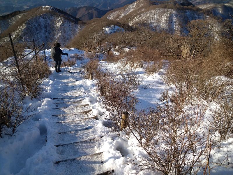 ・表尾根 全区間積雪トレースあり。接続する各登山道にもトレースありのようです。鎖が1部隠れている場所もありました。痩せている部分、岩場は慎重に。陽当りが良く積雪の少ない場所は土や木道が出ていました。