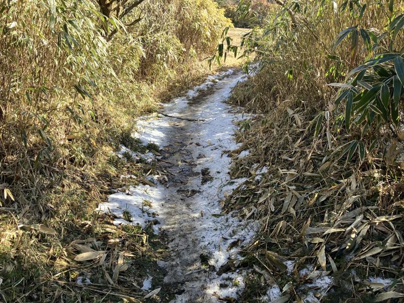 - ・伽藍山~金冠山間はぬかるみあります。雪はかなり溶けており、チェンスパはつけませんでした。