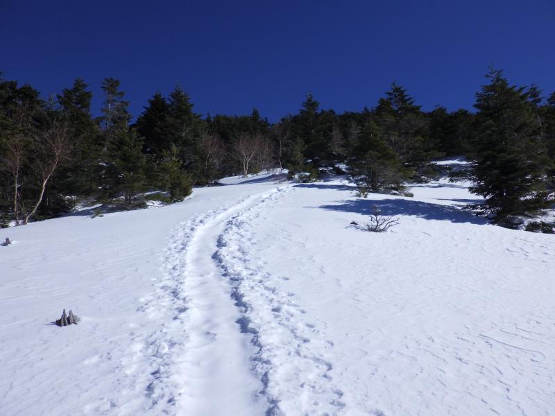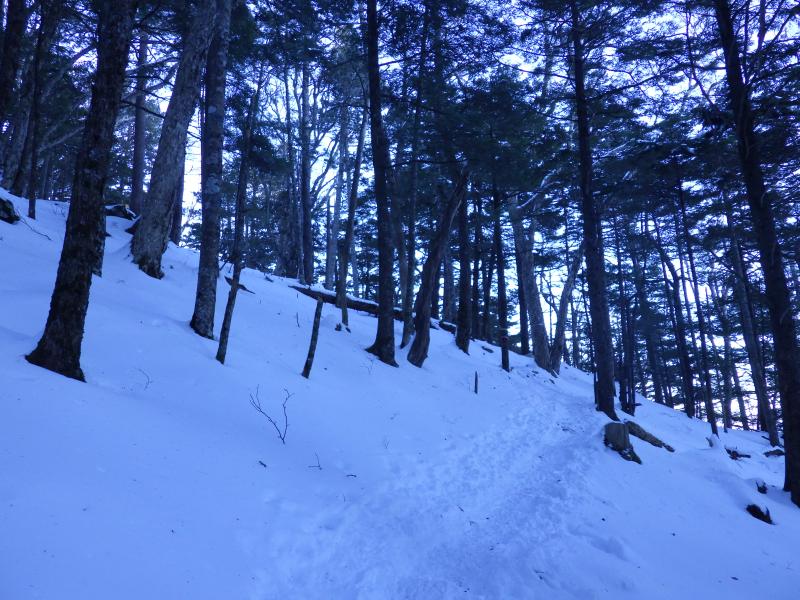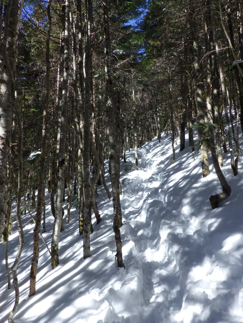 ⑭青年小屋~西岳は危険個所は全くなく、トラバース気味に樹林帯を進みますが、ここもしっかりしたトレースがありました