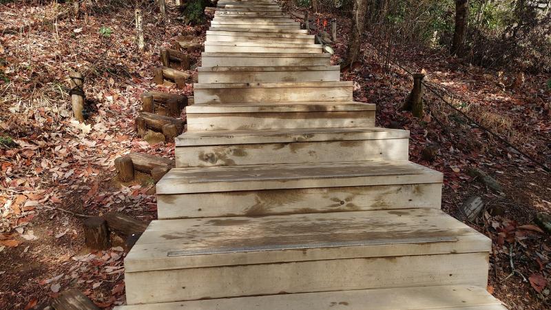 沢沿いの道が終わり急階段を暑さに耐えながら登ります。