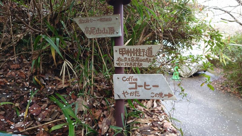 - 高尾山口駅(15分)6号路入口(10分)琵琶滝(45分)高尾山山頂(15分)薬王院(15分)さる園・野草園(20分)金毘羅台園地(20分)甲州街道(20分)高尾駅