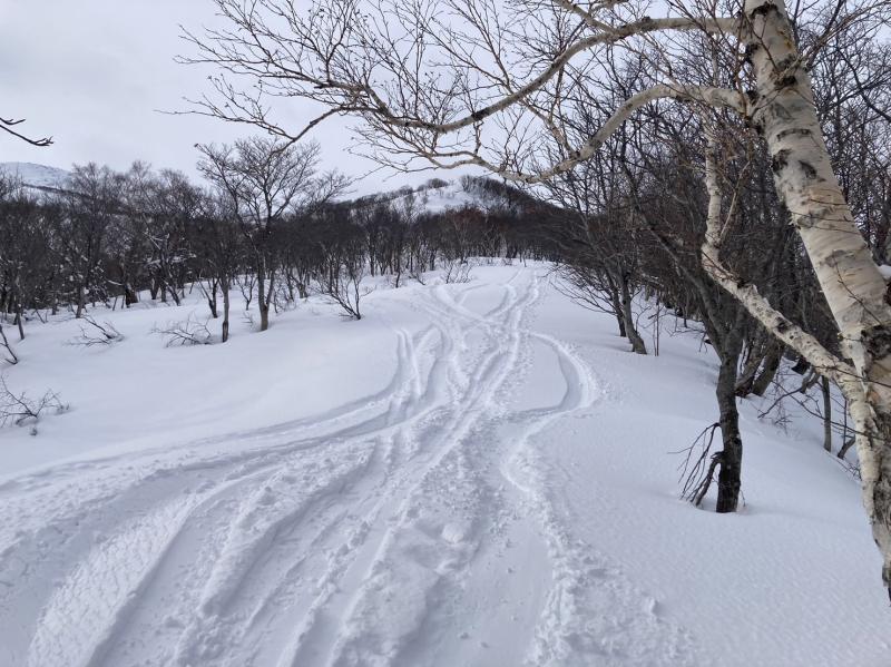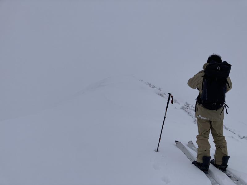 2走目を想定していた斜面まで標高を下げてもまだ真っ白。