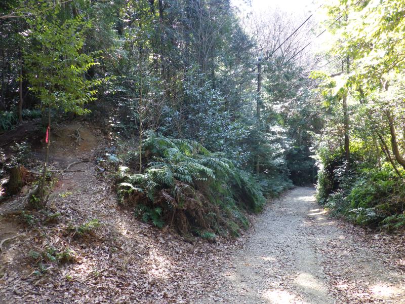 ④大縣神社から尾張本宮山・入鹿池分岐までは林道のような歩きやすい遊歩道で、この分岐で尾張信貴山へも分岐します。泉浄院本堂横に出ます。