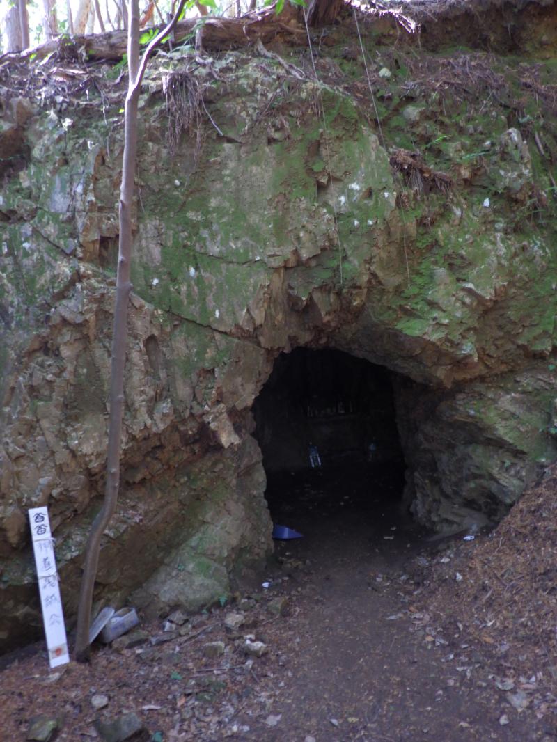 このまま往路下山でもいいですが、まだ未踏の相澤山(そうたくさん・206m)へ途中で寄り道します。なお、大縣神社から尾張本宮山の参道はこの相澤山の北側を巻いています。山頂直下には八大龍王と書かれた碑と共に謎の洞窟があります。壊れた小屋の残骸もあり、ここになにかあったのでしょうか?。ここからやや急坂ですぐに相澤山、山頂はあまり展望はありません。相澤山からは姫ノ宮奥宮経由で下れますが、尾根を進んでしまったようで、少し下ったところの岩場から名古屋市街が見えました。道ははっきりしているので問題はありませんが、結局、宮池上池まで下ってきてしまいました。