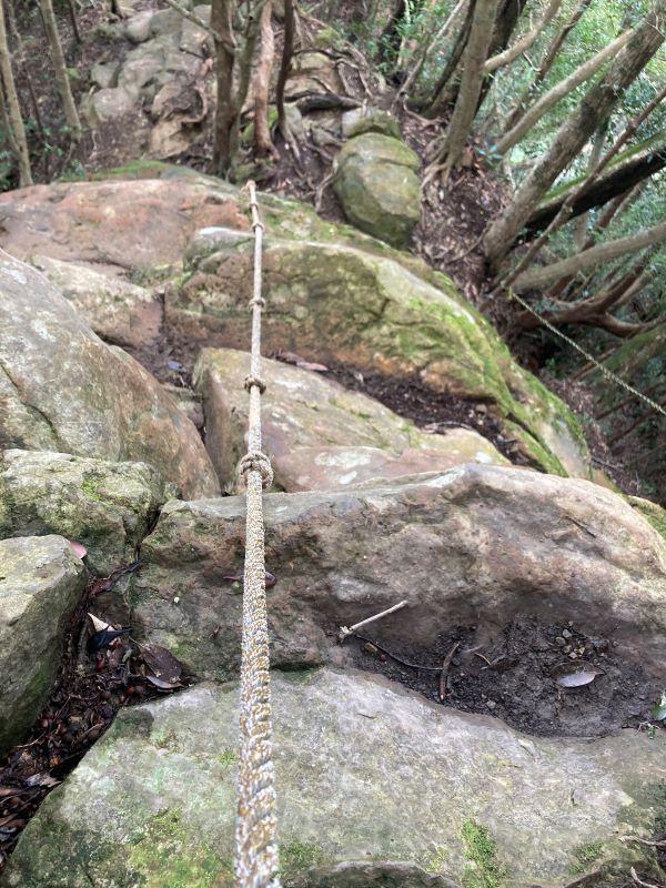 ロープの張られた急勾配(壁?)が続くため悪路。