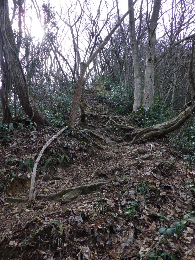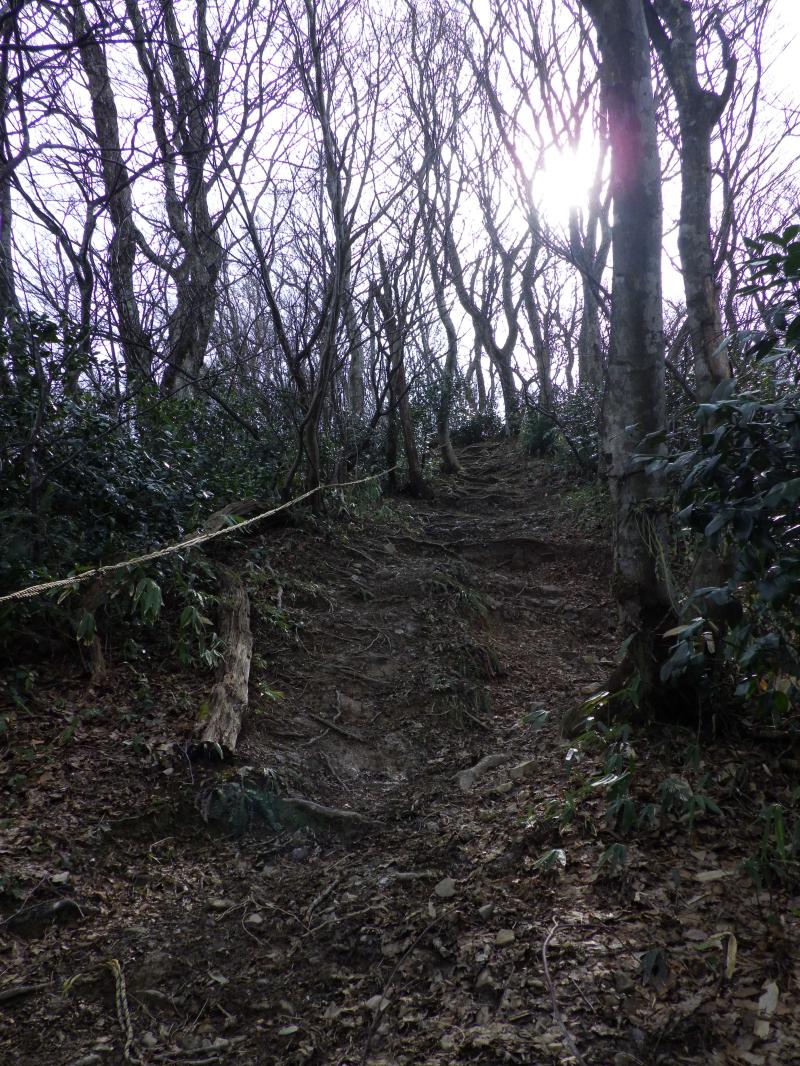 ③中間点まで急登⇒平坦の繰り返しで虎ロープがあります