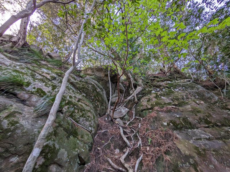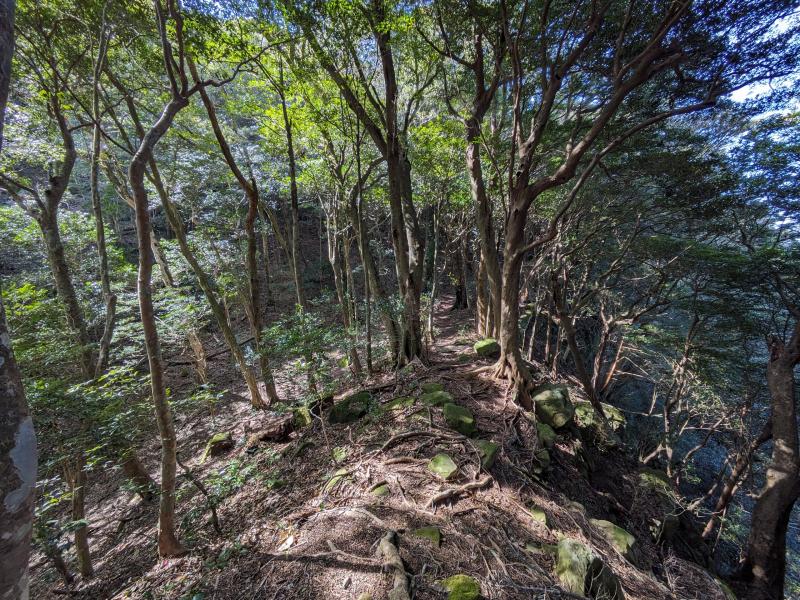 地形図を見るとよく分かる通り、特に稜線までの登りが急で、岩場もあり場所によっては一歩間違えると落ちてしまうようなところもあるなど、油断できない道が続きます。