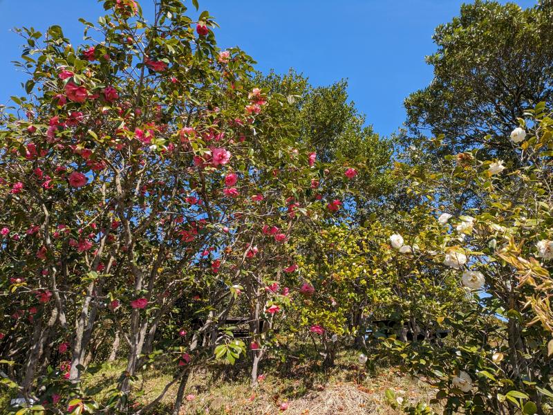 公園内のツバキも見頃で和洋たくさんのツバキを鑑賞。公園からは丸野駐車場までロードをつなぎ、戻りました。