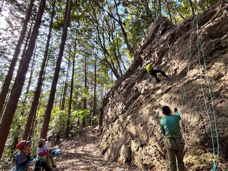歩き方講座では基礎を学び、お昼を済ませたら、皆さんお待ちかねの岩場体験です。