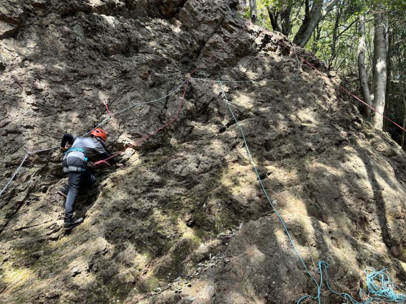 標高197mの天覧山(飯能市)にて、『歩き方講座』・『岩場・鎖場歩きと岩登り体験』の二部構成の実技講座が開催されました。