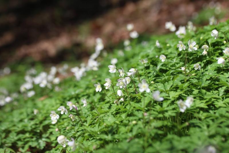 御陵の群生地ははギリギリ間に合い、Nの谷に進みます。ミヤコアオイ、シロバナカタクリ、ミヤマカタバミ、エンレイソウ、午後の光一杯でこれまた朝より良かったです。