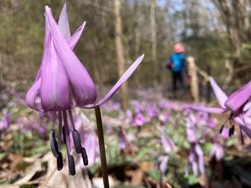 小塩山はカタクリ時間 鑑賞 10:00~15:00までです。Nの谷、炭の谷、御陵の谷あります。