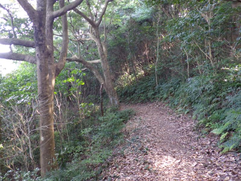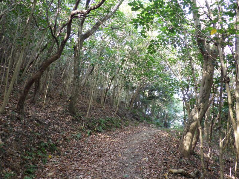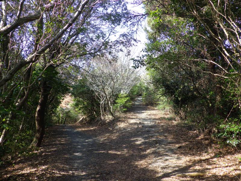 今回は左周り(竜宮バルコニー東山⇒乙姫バルコニー尾村山)で登ります。赤羽根文化の森のスタート時はパターゴルフ場というゲートがあり、入っていいのかわかりませんが、ココをくぐってスタートします。すぐにタイやヒラメ小屋があり、この上で乙姫バルコニーと竜宮バルコニーどっちから先に行くかを決めて、進みますがどちらでも大差はありません。15分も歩けば、東山と尾村山の稜線に出てしまいます。この稜線は緩やかな遊歩道で、道も整備されていますのでお子様でも安心です。帰りは登山道経由でまっすぐ下る道を選択しましたが、下の林道にはすぐに下れます。