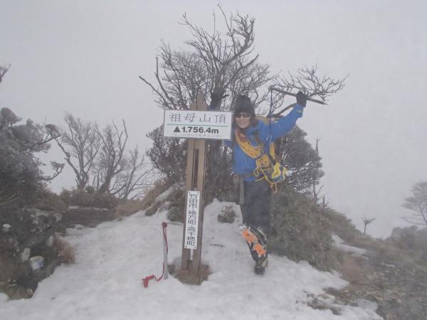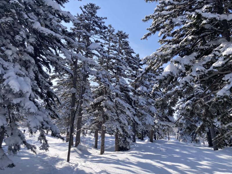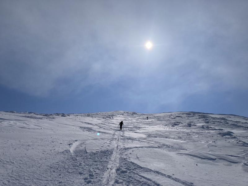 最後の急登で風の影響でしょうか?雪がカチコチで、