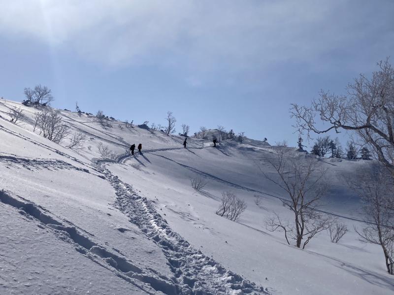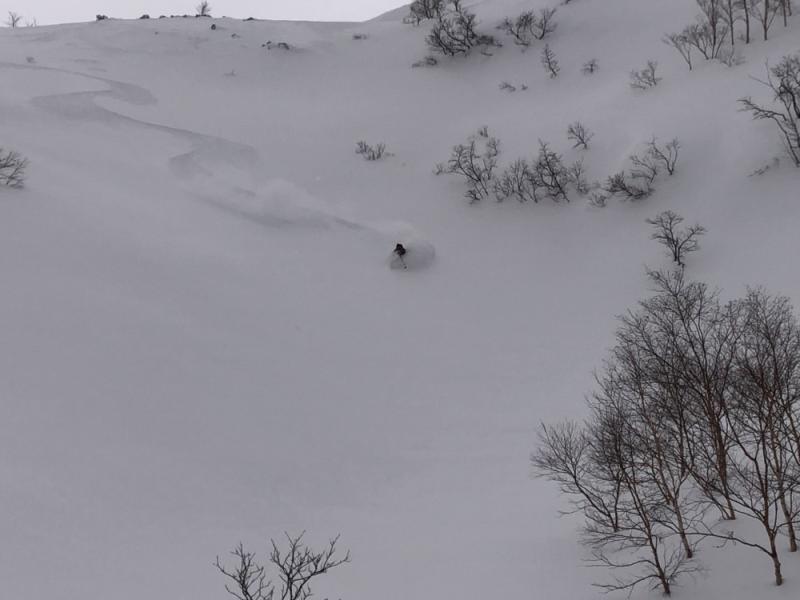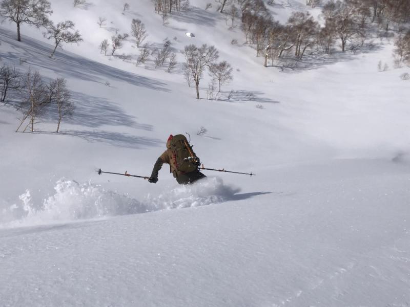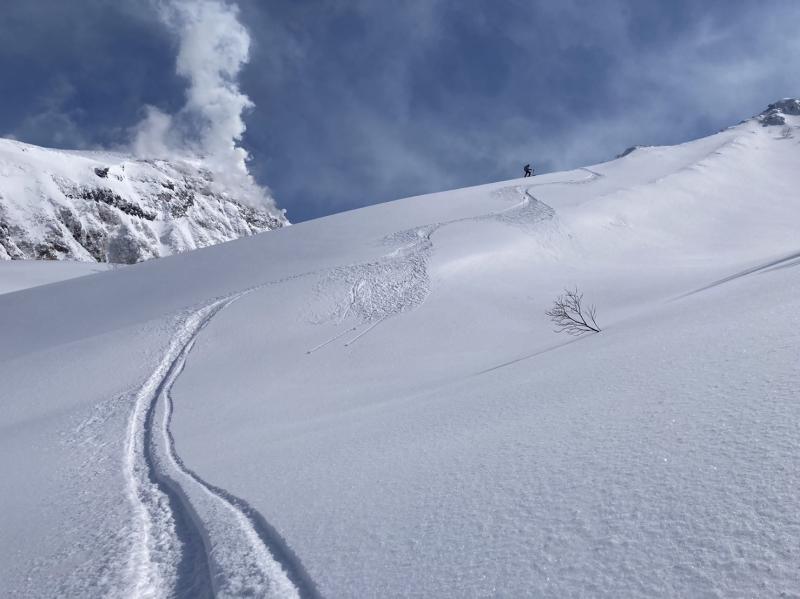 富良野岳手前のホコ岩シュートを滑っている人なんかも