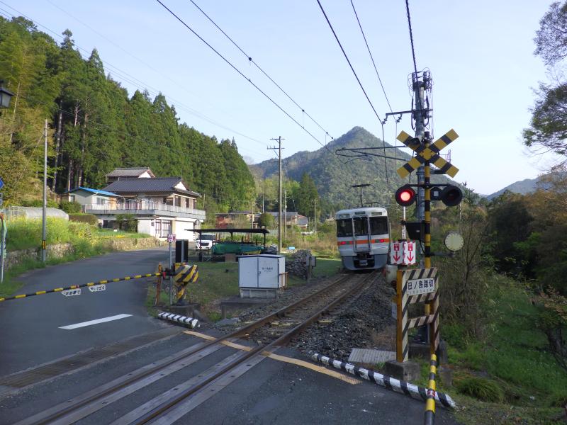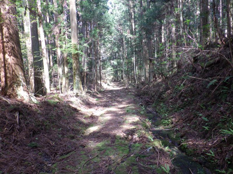 ここから裏行場で下って行きますので、まだ長い行程です。湯谷峠までは東海自然歩道で整備されていますが、その先は林道の延長のような道であまりいい道ではありません。川沿いまで出ると間伐道ウツギノ線という林道に出て、足早に下って行きます。この林道の起点まで来ると、舗装路に変わり、思ったより早く駐車場までかえって来れました。