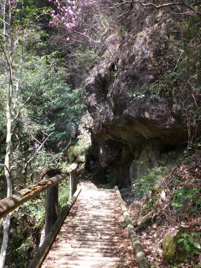鳳来寺山(ほうらいじさん・684m)⇒瑠璃山(るりやま・685m)は設楽山系に属し、約2000万年前の火山活動によって噴出した流紋岩、松脂岩、凝灰岩等で構成され、古くから山岳修験道の霊山で、かってNHKが放送したブッポウソウ(コノハヅク)の鳴き声でも有名にもなりました。鳳来寺山への玄関口の一つである表参道は中腹の鳳来寺やのちに家光によって建立された鳳来山東照宮への参道でもあり、高い杉の木がそびえ立つ中、1425段の石段が続きます。
