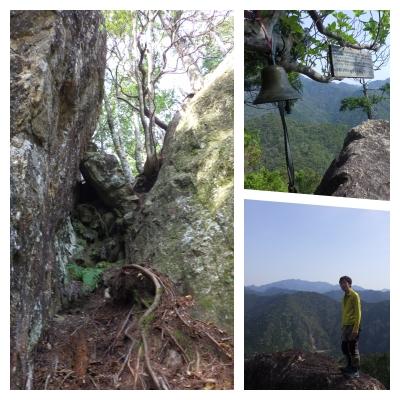 ⑯瑠璃山は鳳来寺山の最高点で登山道は鉄階段で巻いていますが、山頂へは岩場をよじ登ります