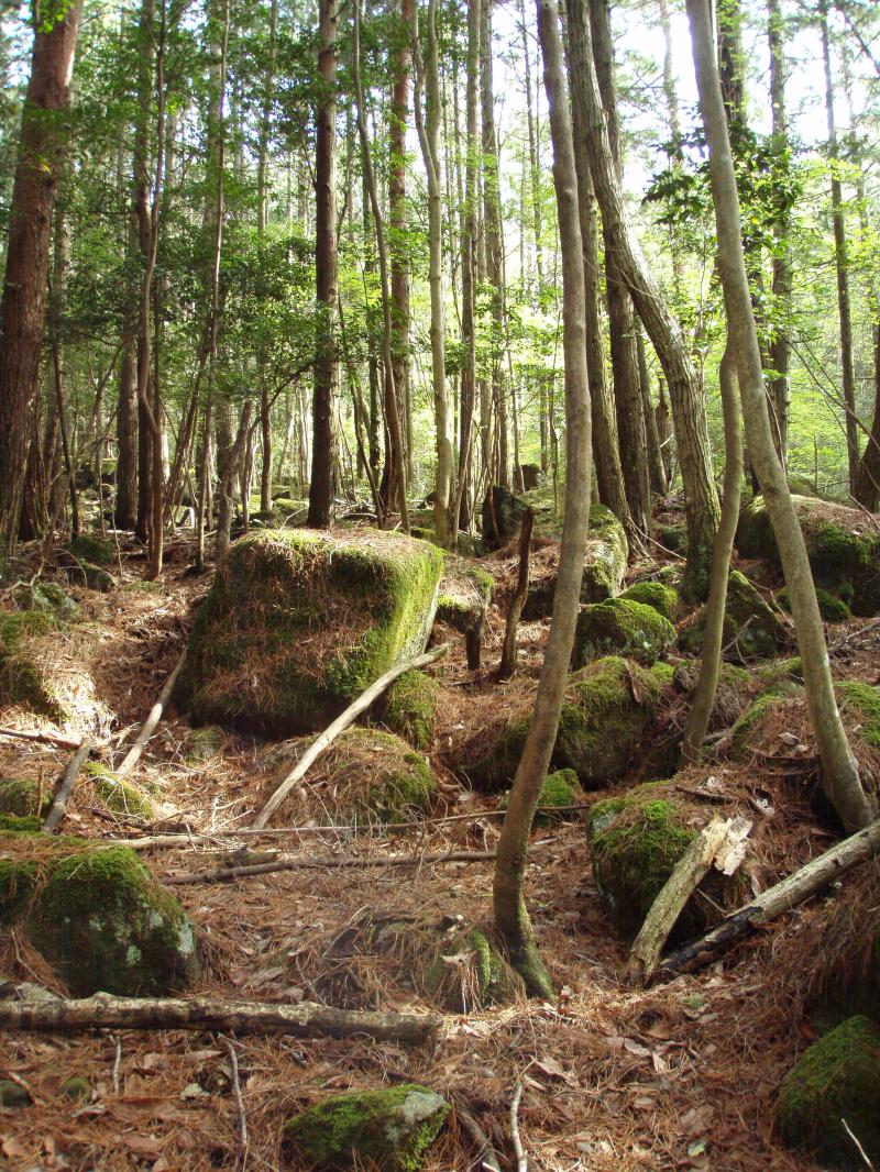 南側の千ヶ畑・登山から入山。半国山は全体的に石・岩が多く、苔っぽい場所も多々あるので、足元をしっかり見て歩く必要が有ります。今回は谷ルートではなく尾根筋に直登して尾根道から山頂に向かいましたが、若干遠回りになります。