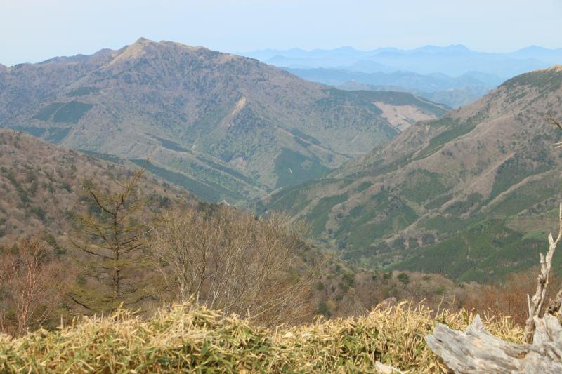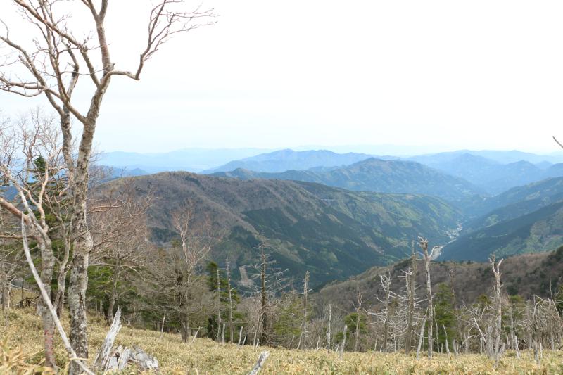 山頂から四国のゴールデントレイルを眺めます。この縦走路は四国の関門でもあり、なかなか手ごわい道です。晴れていると石鎚山までも望める絶景ポイントです。