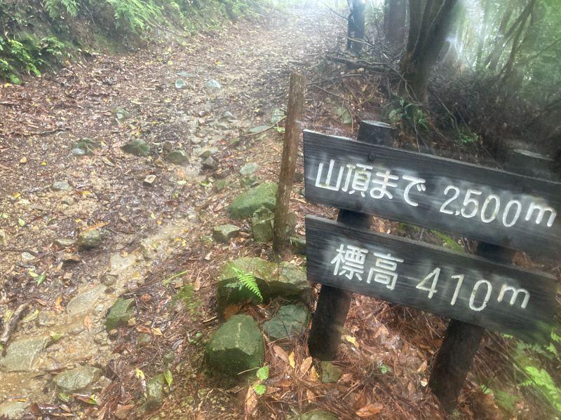 本降りの雨のなか登り始め。