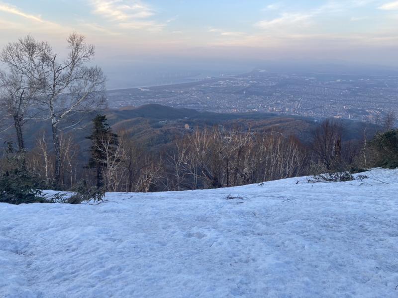 前日に三角山から見た手稲山にはまだ雪が残っている様子。