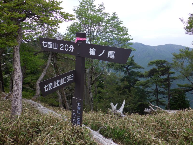 - 林道ゲート(56分)七面山登山口(56分)七面山西峰(13分)槍ノ尾ノ頭(26分)七面山東峰(40分)楊枝ノ森(38分)舟ノ垰過ぎ下降点(20分)神仙平(21分)林道終点(100分)林道ゲート