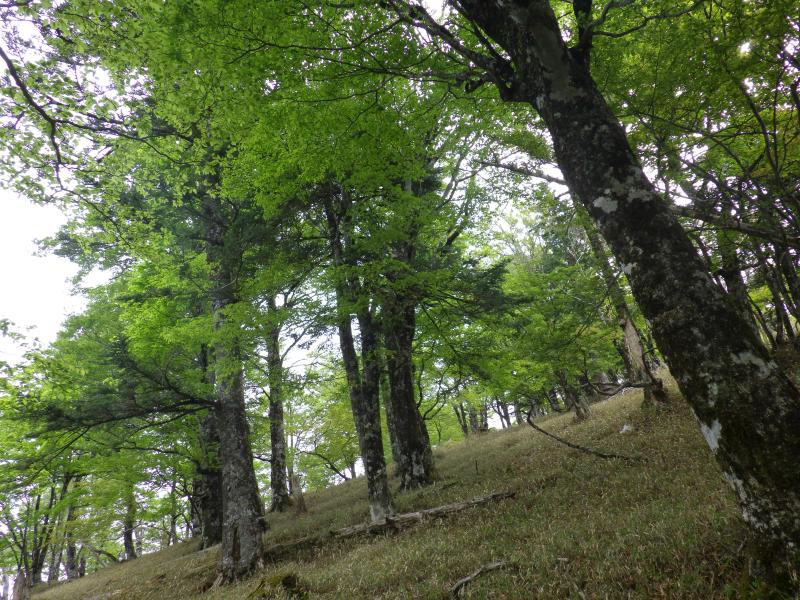 ⑭神仙平は広い台地ですので、適当に下り、下部でカラハッソウ谷側に寄りながら進み、