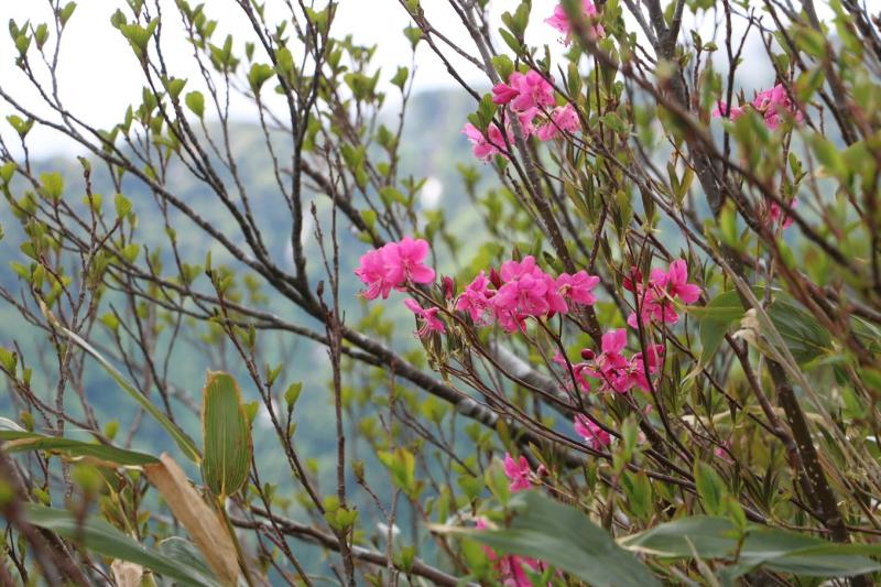 タカネザクラ一杯の春の残雪白山を楽しめました。