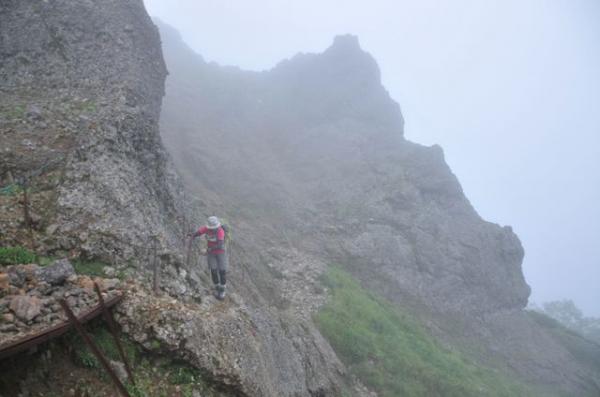 二日目は天気がよくなく視界は悪かったものの 登山道は濡れてなく、
